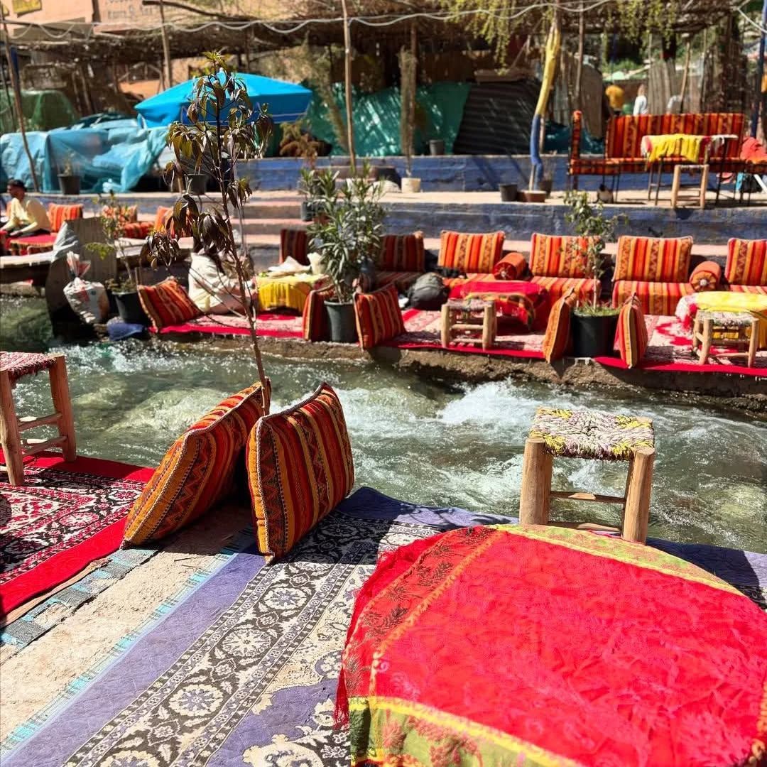 Our excursion starts in the morning 9H00 from the hotel or Riad to the valley of Asni, arriving at the foot of the high atlas, greeted by several Berber villages that are built with red earth in adobe and if you are interested in visiting a Berber house we will take mint tea at an inhabitant. Afterwards we continue our tour of discovery to see the contrasting colours of nature, then we go to the Sidi Faresse valley in the High Atlas mountains for a short walk and photos, and then we drive to the Ourika valley for a visit and lunch. Finally we cross the Ourika valley to arrive in Marrakech.