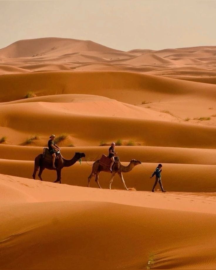 Enjoy a camel trek into the dunes and a magical Sahara sunset.
